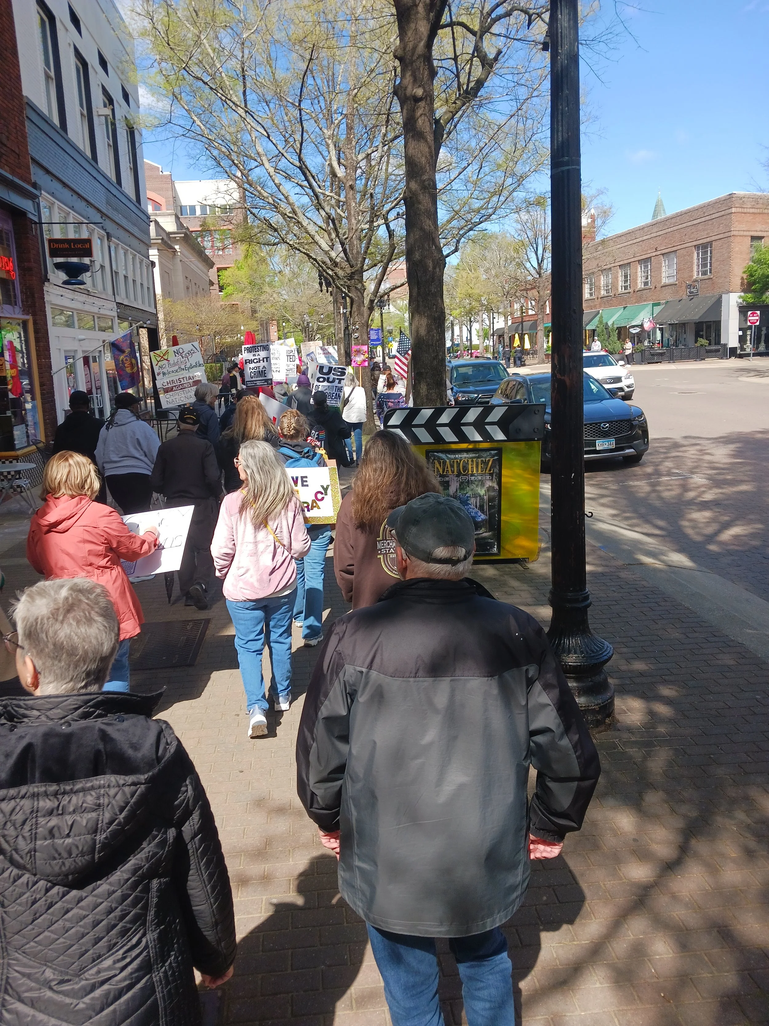 Leading the charge and directing traffic were cheery-looking volunteers in bright green visibility vests. We were to walk a short circuit around the Market House that was once used to auction slaves and which, inexplicably enough, not only still stands but appeared on our city’s seal until as early as 2022. “Retards!” someone shouted from the comfort of their Ford F-150. A college student duly flipped him off, the keffiyeh he was wearing having caught the attention of the moderate behind him. He seemed provoked by the sight, turned to the person next to him to rehash the disastrous results of the 2024 election. “It’s the kids. Harris didn’t stand a chance with them. They get all their opinions from the internet. Not old enough to have their own thoughts worth listening to.” He no doubt reiterated as much on his own Facebook page later that same day. The march continued with more cheers and heckles, couldn’t have been more than twenty minutes, and in those twenty minutes the passing small businesses, artsy movie theater, the frozen yogurt stand, pet groomers, occult and mystery shop, all intermingled with songs of resistance, of hammers and bells and their needing to be sounded and inflicted in the name of love over this land that feels more and more like a fermenting compost heap for history’s worst sins, with us being braised under its pale crimson hue at the bottom; a place where no one would reasonably want to call home if given the choice, but for the bravery of forgotten heroes, and the way that you can see still see fireworks with closed eyes after you’ve looked up into the night sky for long enough.